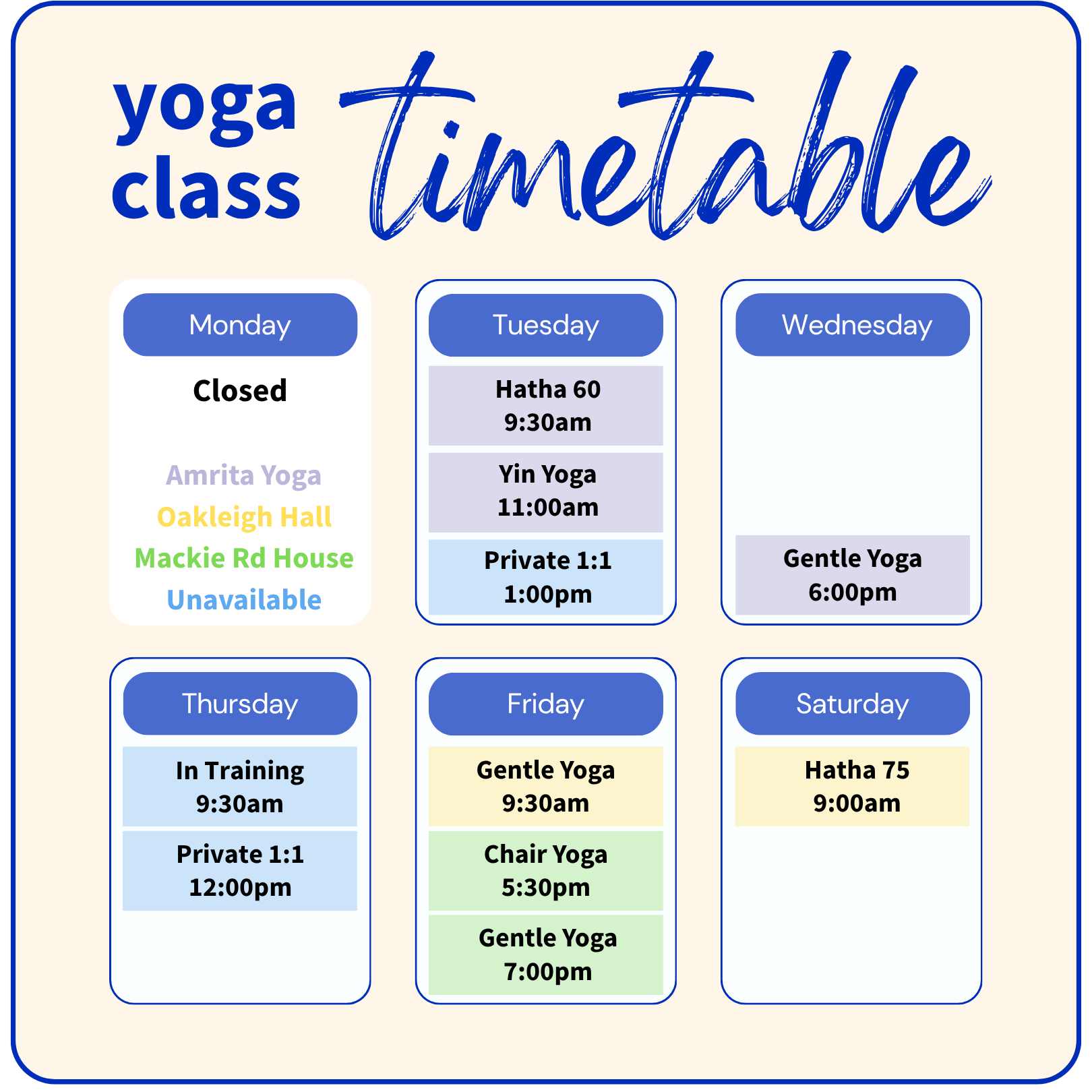 If you loved the day, time and location, great! This time slot will now become a new GENTLE YOGA CLASS, the perfect continuation from what you’ve learned in the Beginners Program.